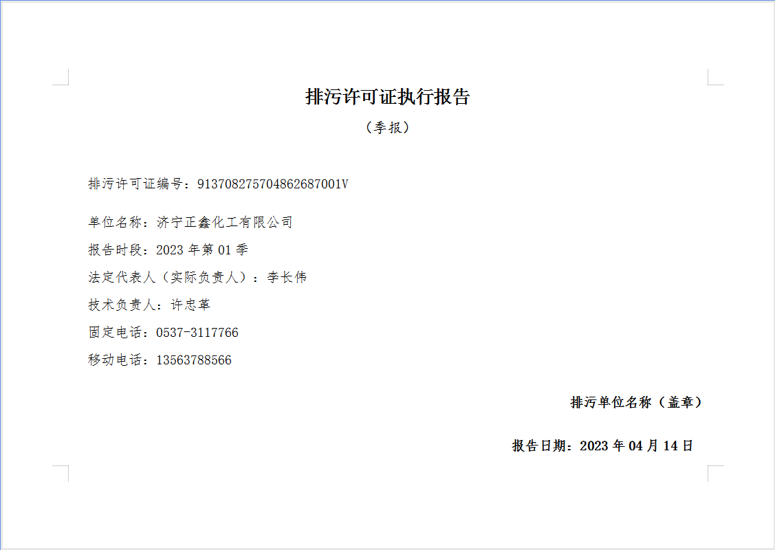 2023年1季度排污许可证执行报告 2023-4-21 本文被阅读 657 次